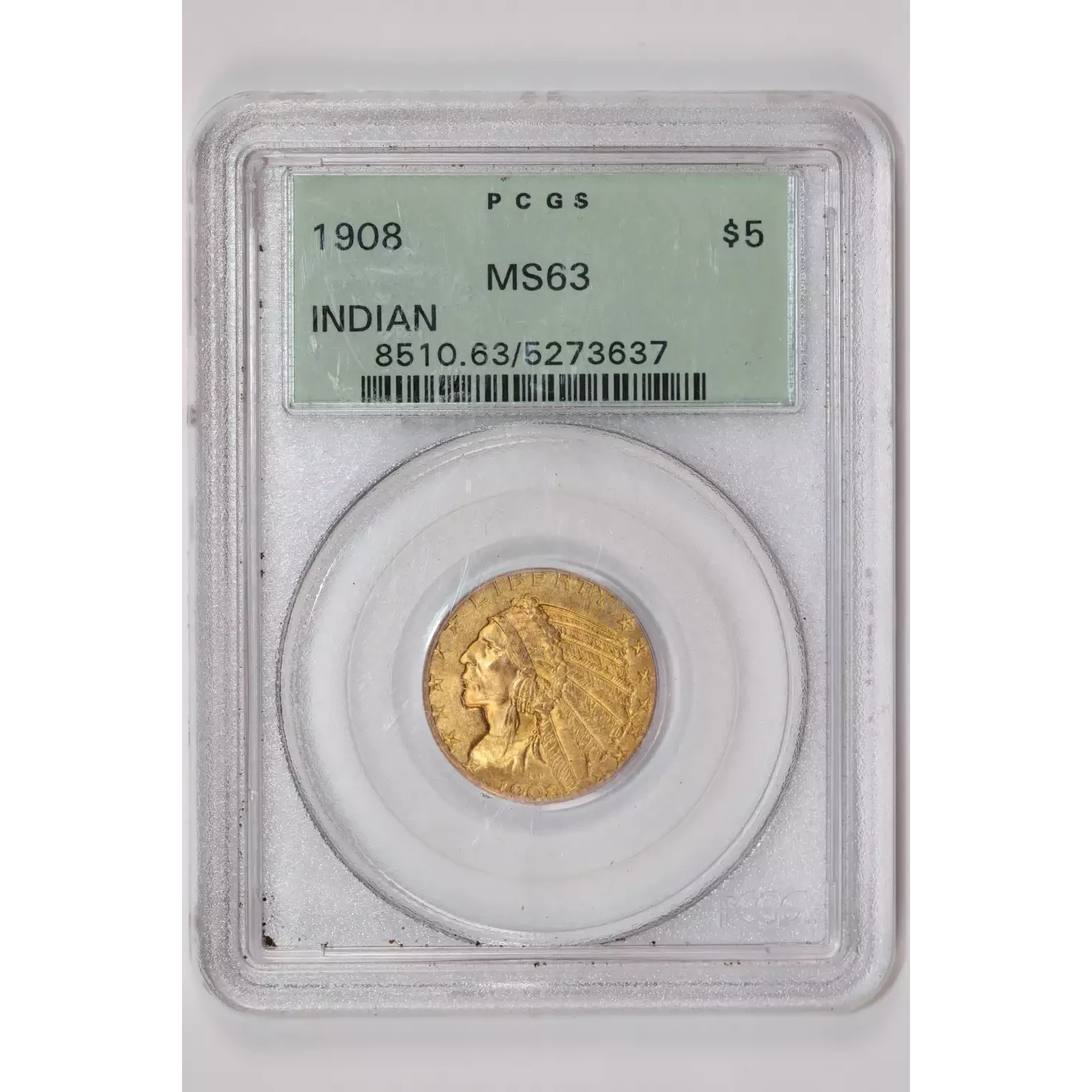 517211 | 1908-D Gold Half Eagles $5 Indian Head PCGS MS-63 | PCGS | MS-63 | Sold: 10/03/2023 | $2,130 |