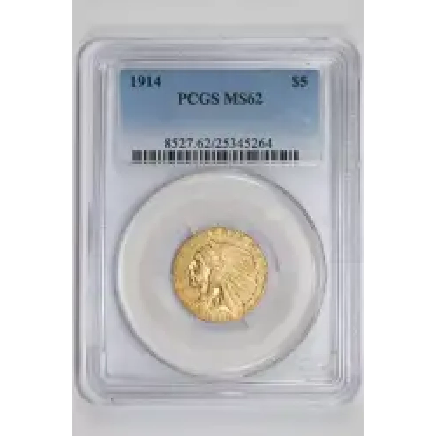 514620 | 1914-MS-62 Gold Half Eagles $5 Indian Head PCGS MS-62 CAC | PCGS | MS-62 | Sold: 22/02/2021 | $4,500 |