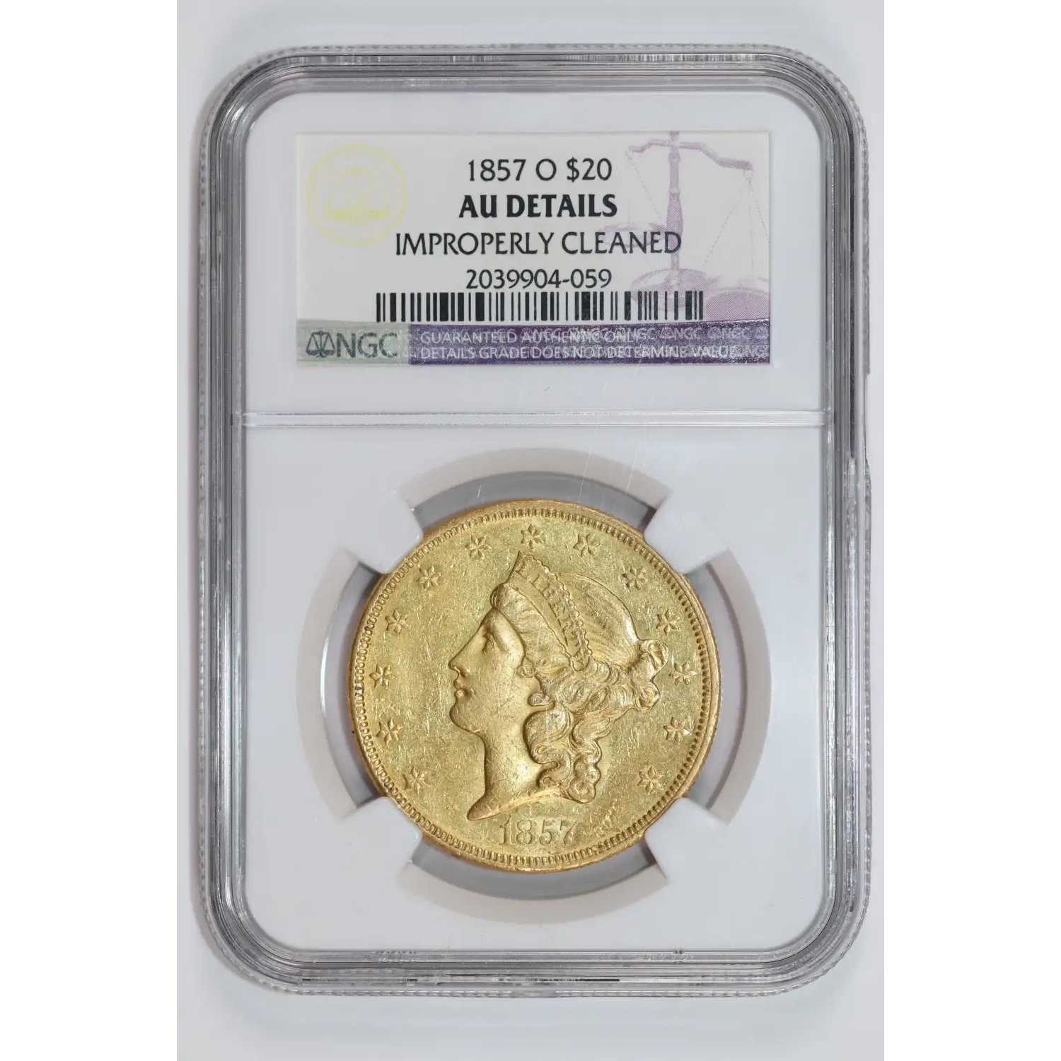 535639 | 1857-O Double Eagles Liberty Head NGC AU Details | NGC | AU Details | Sold: 28/10/2025 | $12,950 |