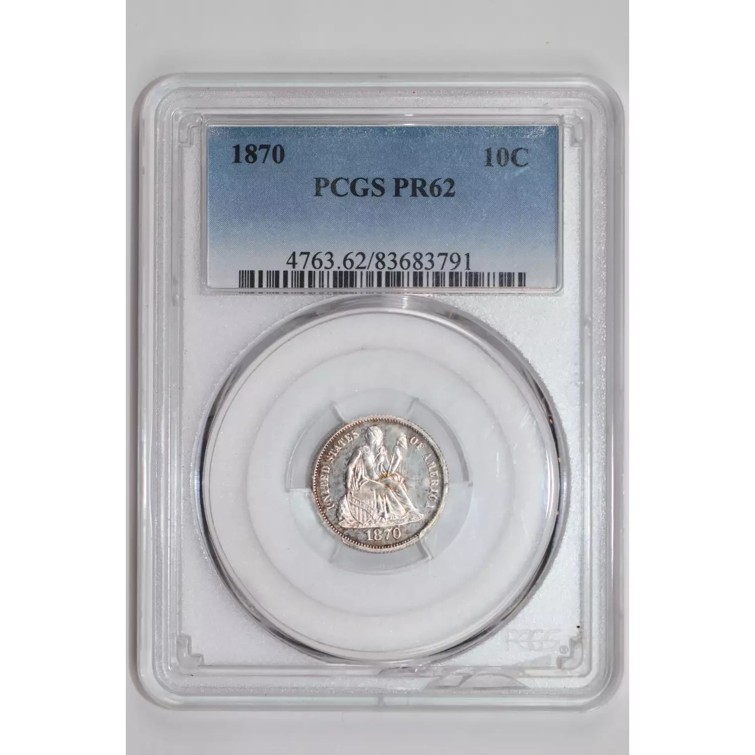 534779 | 1870 Liberty Seated Dime PCGS PR-62 | PCGS | PR-62 | Sold: 09/10/2025 | $495 |