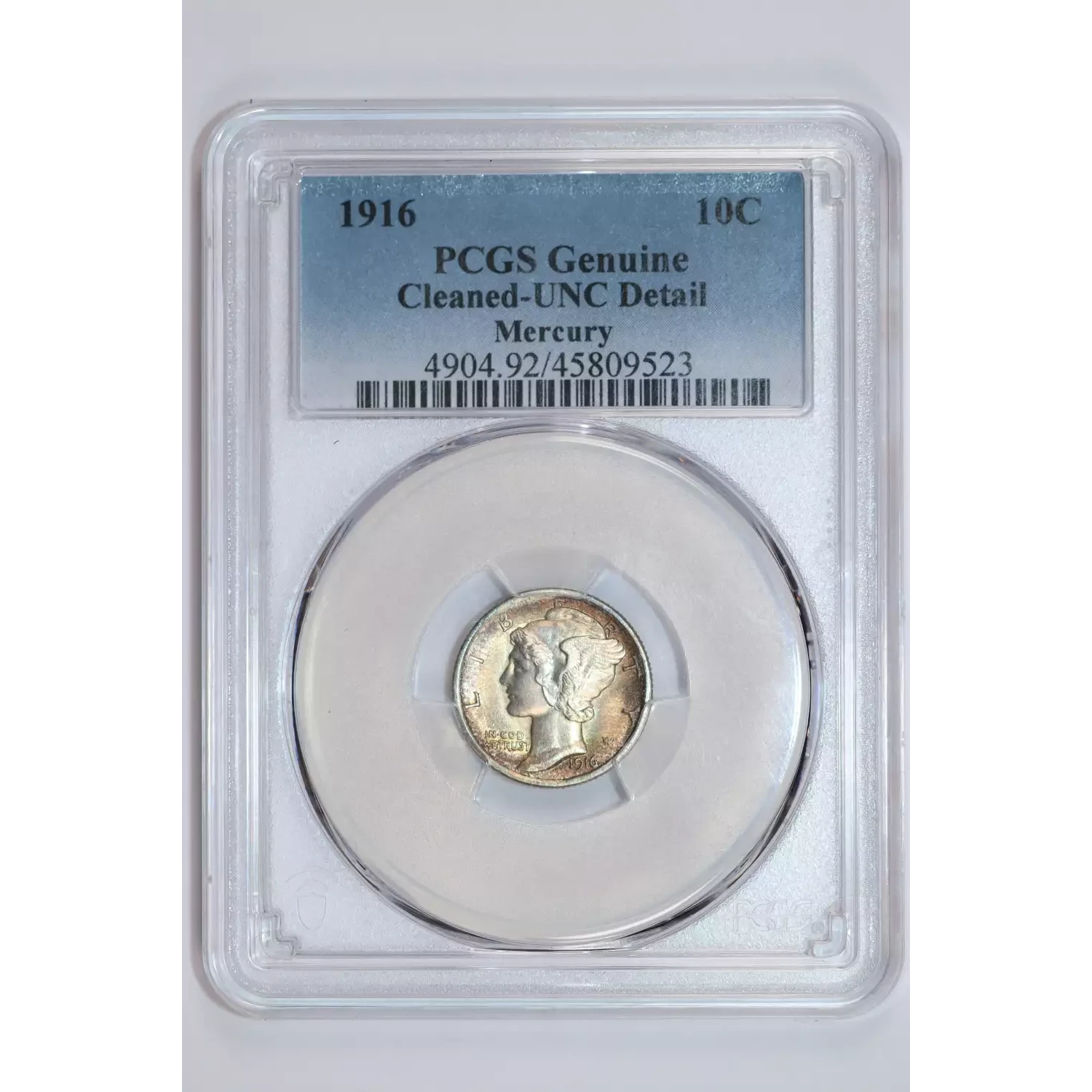 534638 | 1916 Dimes Winged Liberty Head or Mercury PCGS Genuine - UNC Details (92 - Cleaned) Mercury | PCGS | Genuine - UNC Details (92 - Cleaned) | Sold: 09/10/2025 | $70 |