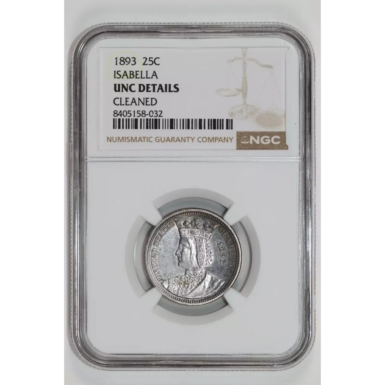 535251 | 1893 Classic Commemorative World's Columbian Exposition, Isabella Quarter NGC UNC Details ISABELLA | NGC | UNC Details | Sold: 09/10/2025 | $320 |