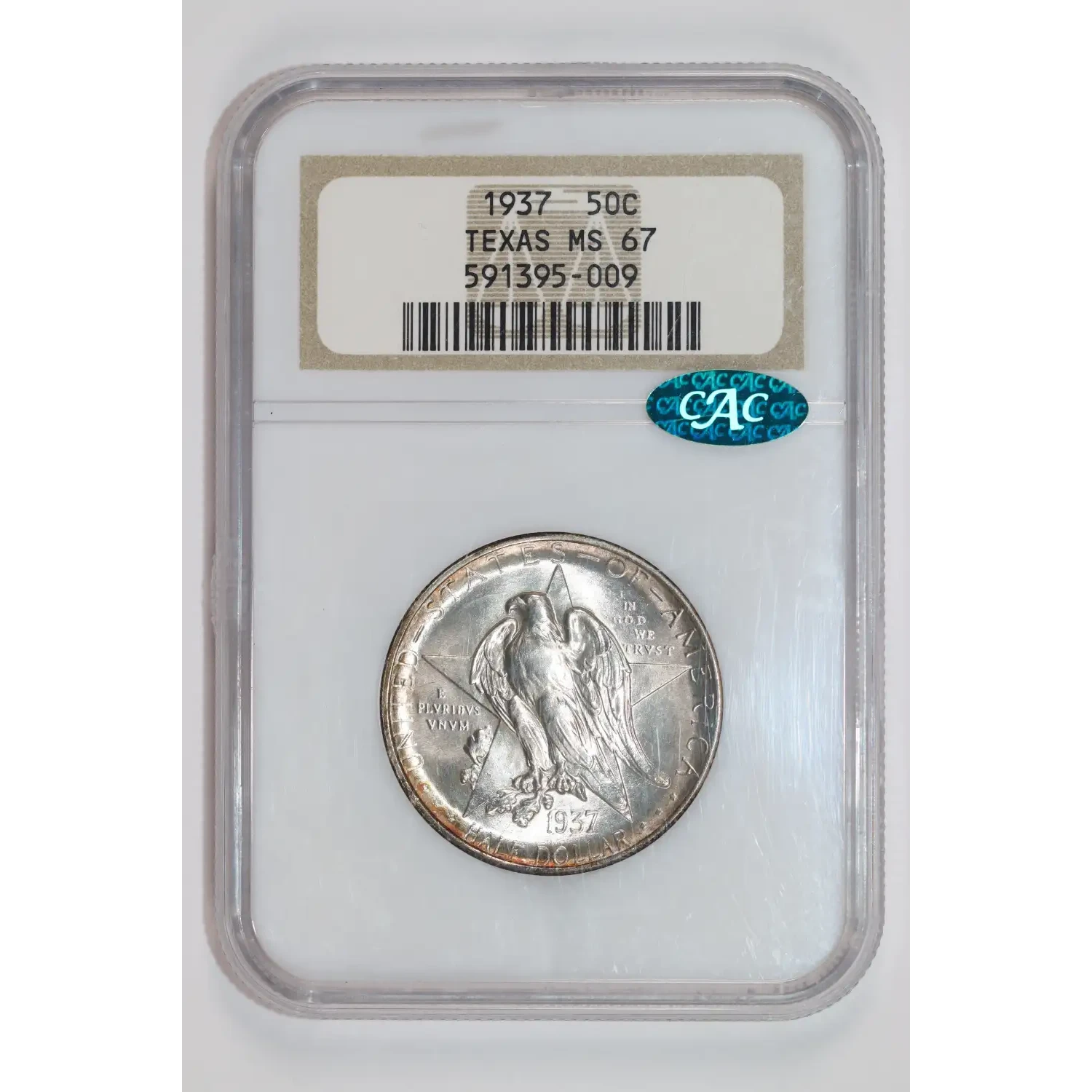 535565 | 1937 Classic Commemorative Texas Independence Centennial NGC MS-67 TEXAS CAC | NGC | MS-67 | Sold: 09/10/2025 | $1,050 |