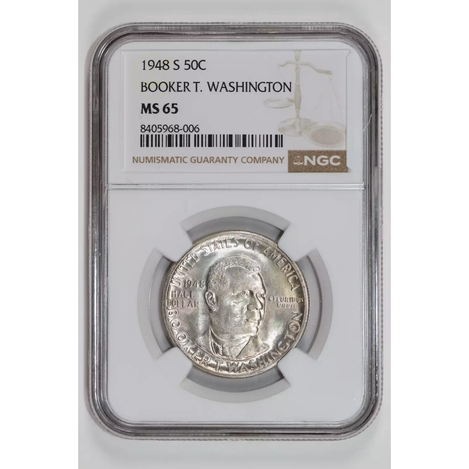 525576 | 1950-S Classic Commemorative Booker T. Washington Memorial NGC MS-65 BOOKER T. WASHINGTON | NGC | MS-65 | Sold: 04/04/2025 | $70 |