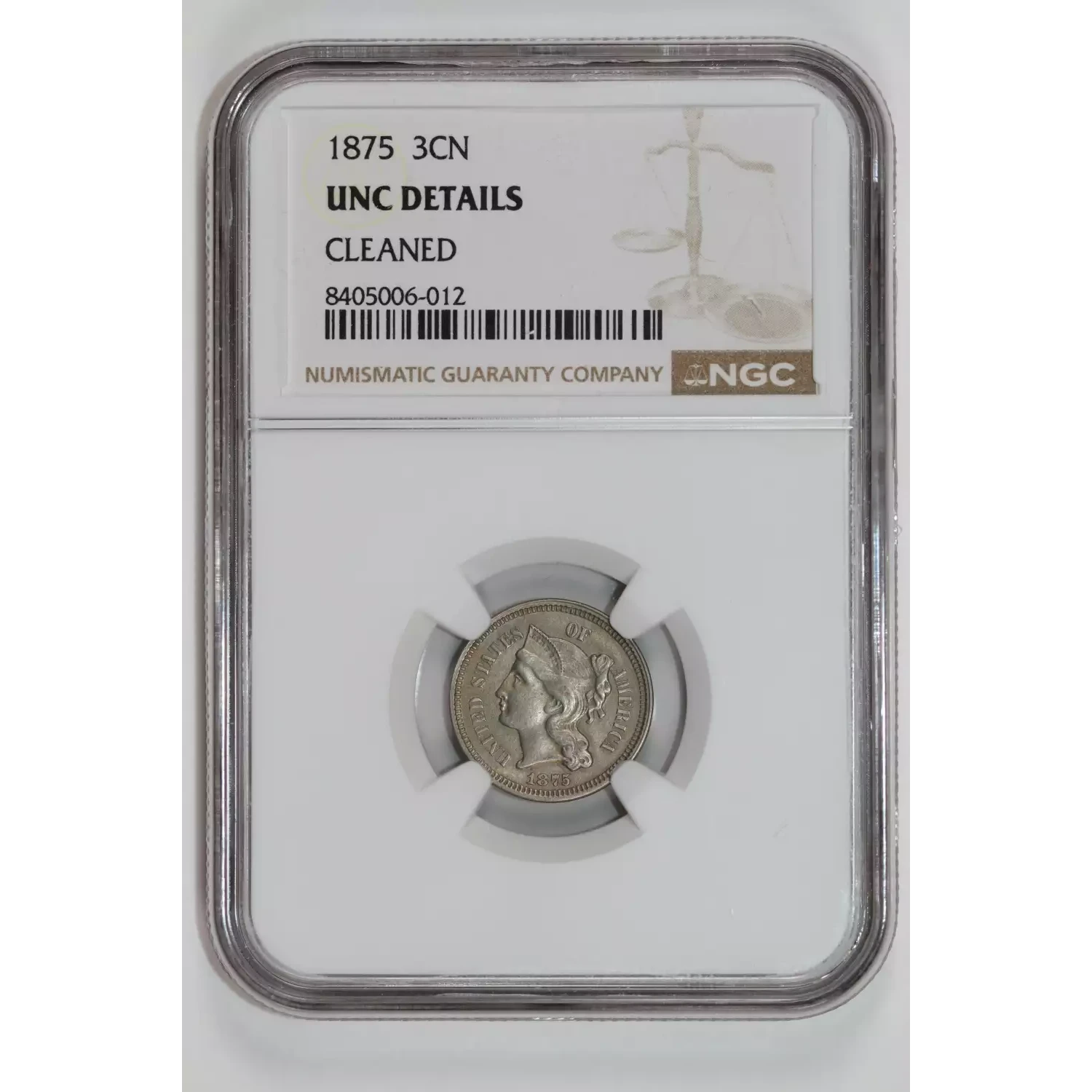 535404 | 1875 Three Cent Pieces (Nickel) NGC UNC Details | NGC | UNC Details | Sold: 09/10/2025 | $225 |