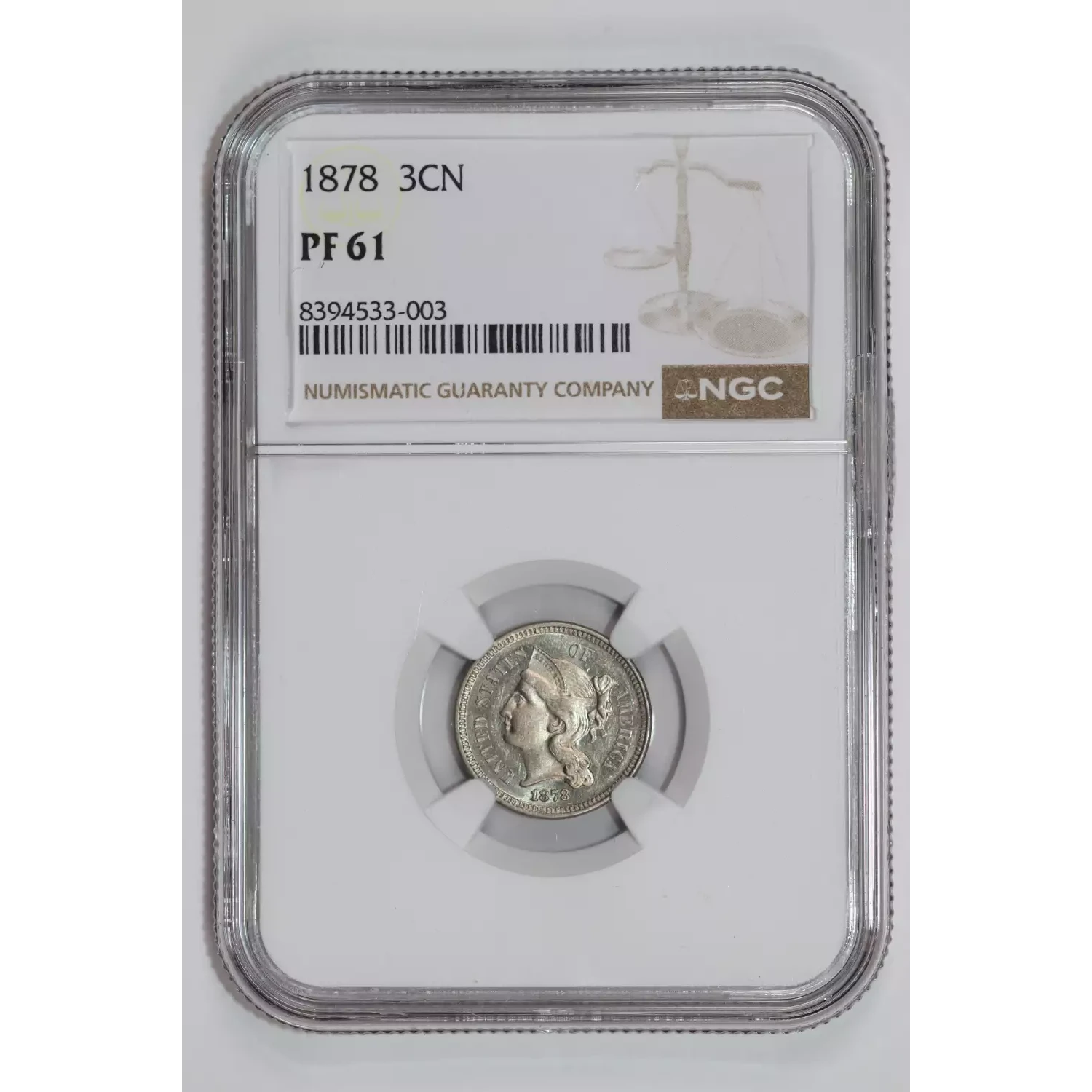 534748 | 1878 Three Cent Pieces (Nickel) NGC PF-61 | NGC | PF-61 | Sold: 05/09/2025 | $725 |