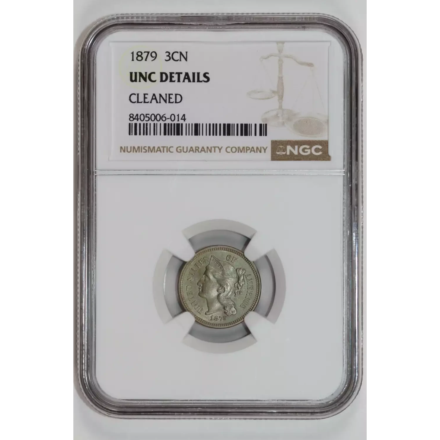 535401 | 1874 Three Cent Pieces (Nickel) NGC UNC Details | NGC | UNC Details | Sold: 09/10/2025 | $225 |