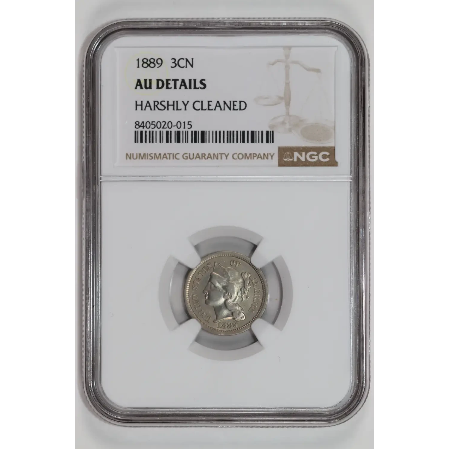 508270 | 1889-AU-55 Three Cent Pieces (Nickel) PCGS AU-55 | PCGS | AU-55 | Sold: 21/07/2015 | $275 |