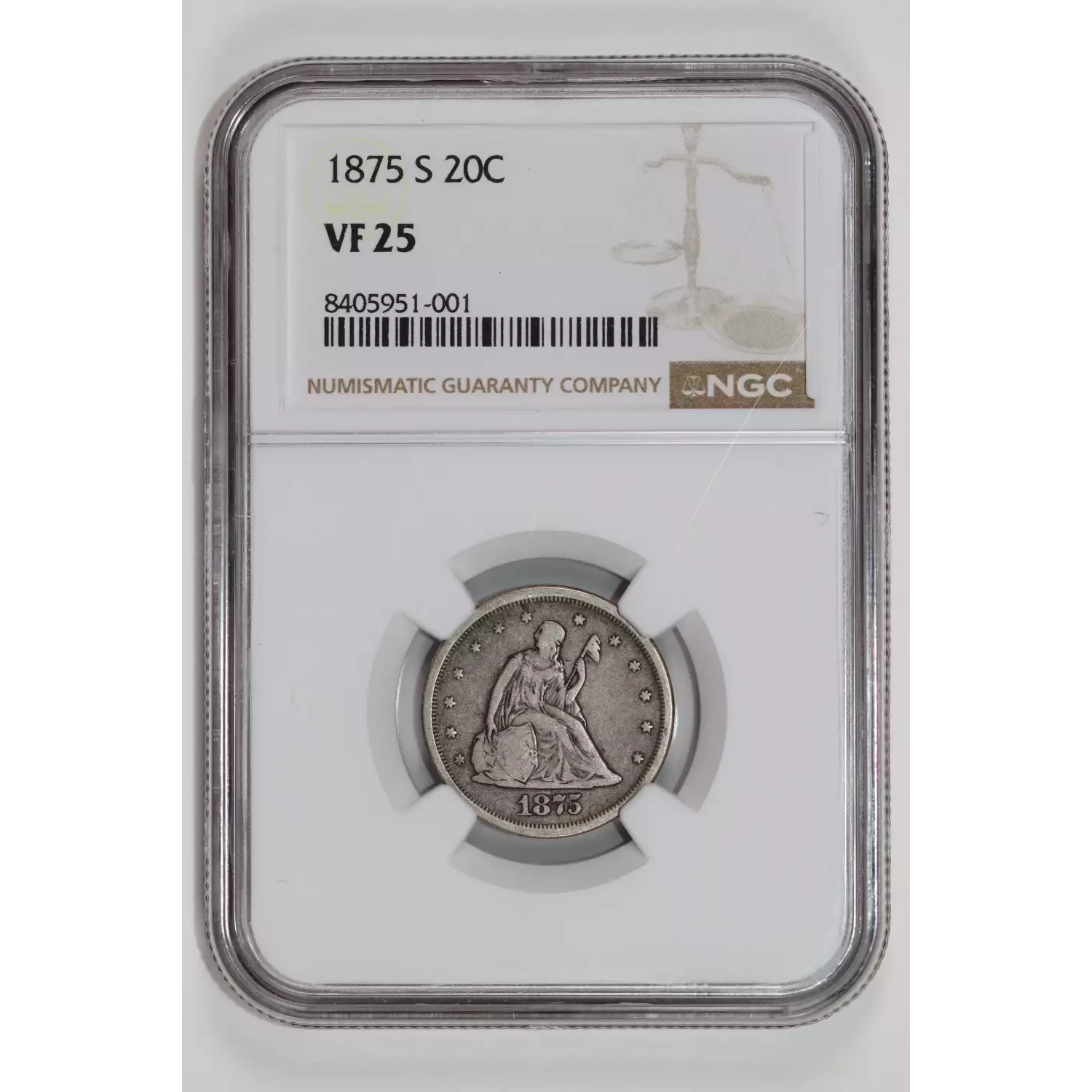 507444 | 1875-VF-20 Seated Liberty Twenty Cents PCGS VF-20 | PCGS | VF-20 | Sold: 26/05/2014 | $150 |