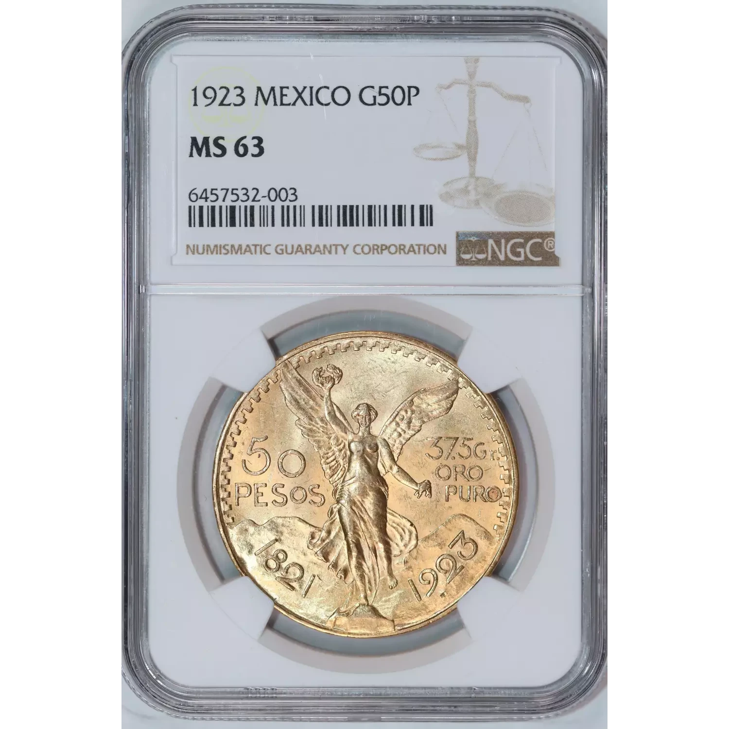 1923 MEXICO GOLD 50 PESOS NGC MS63