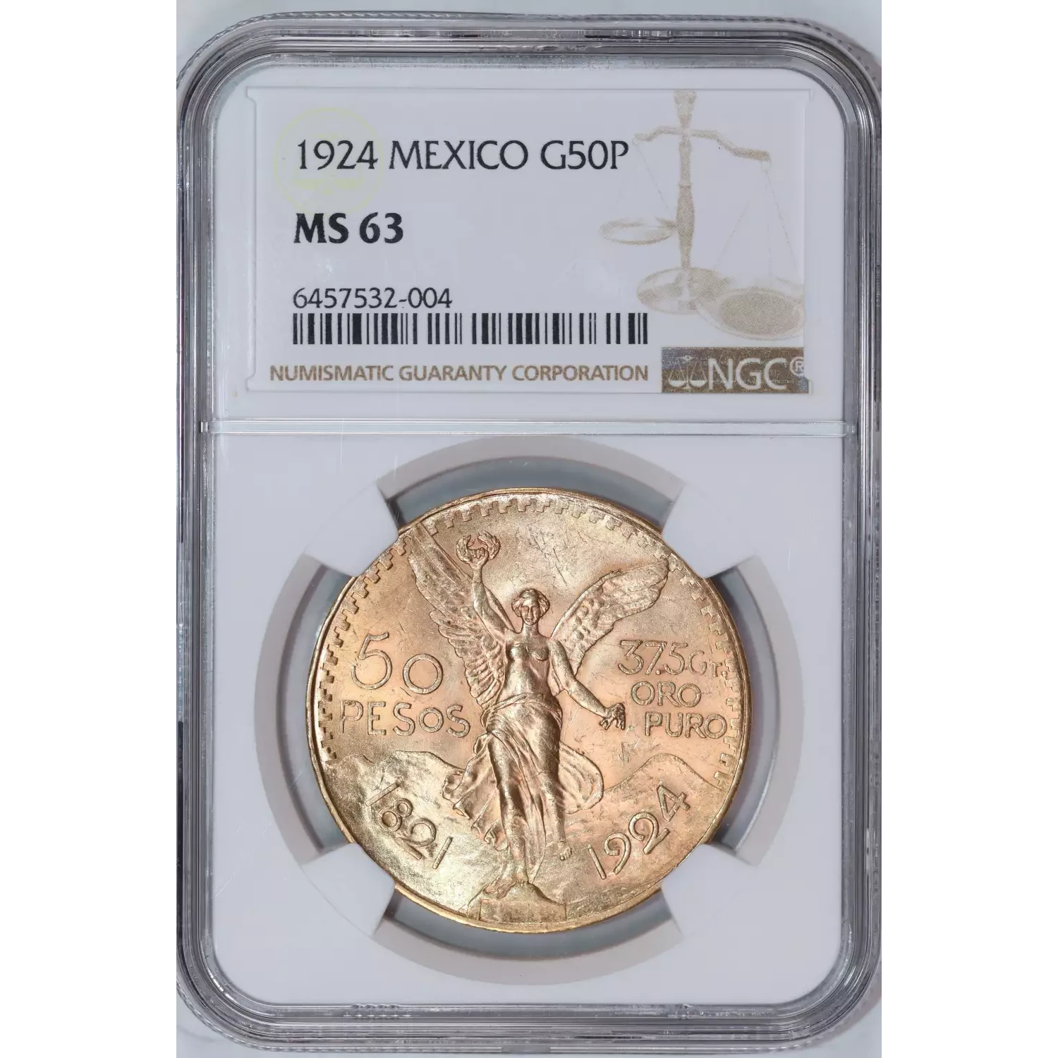 1924 MEXICO GOLD 50 PESOS NGC MS63