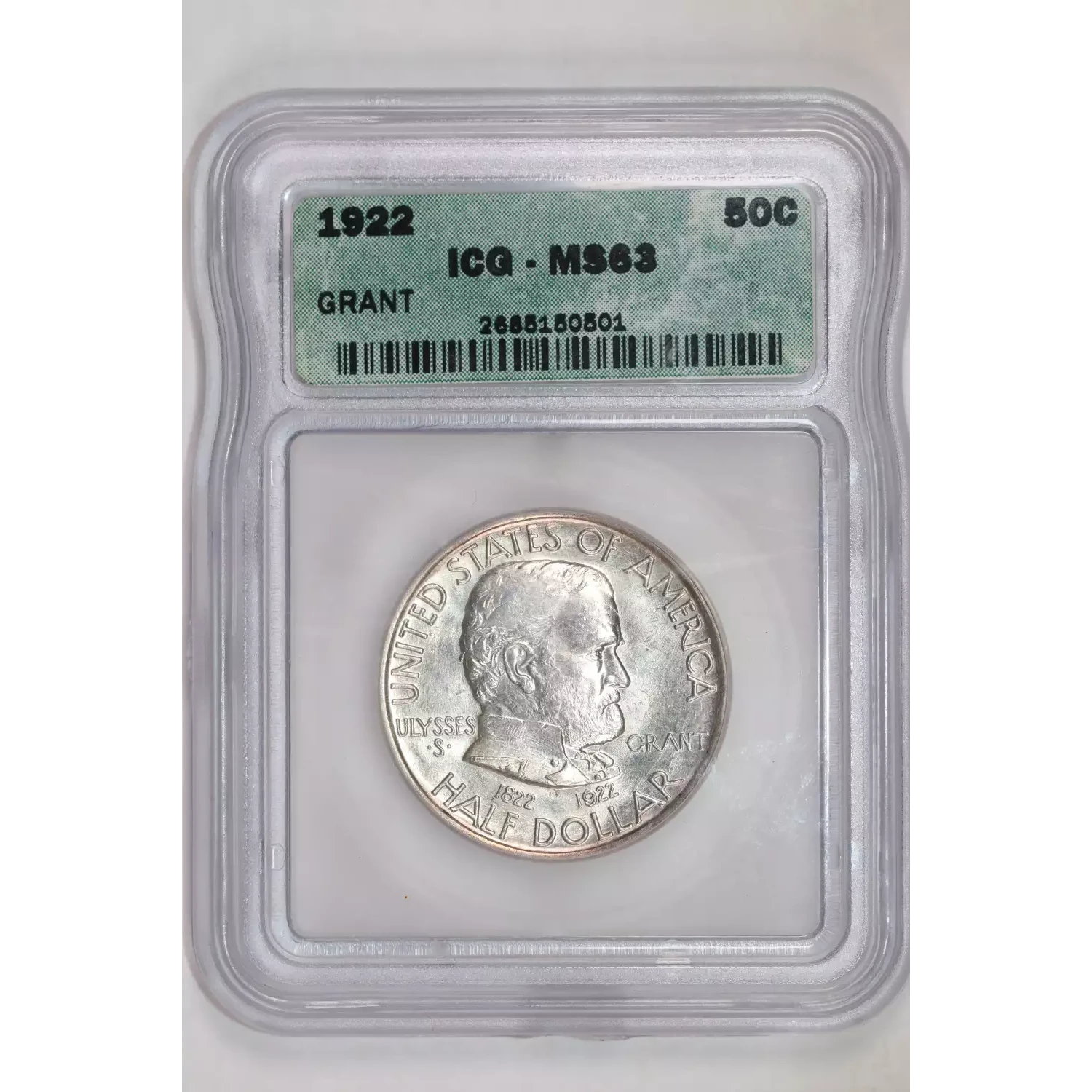 1922 GRANT SILVER COMMEMORATIVE HALF DOLLAR ICG MS63