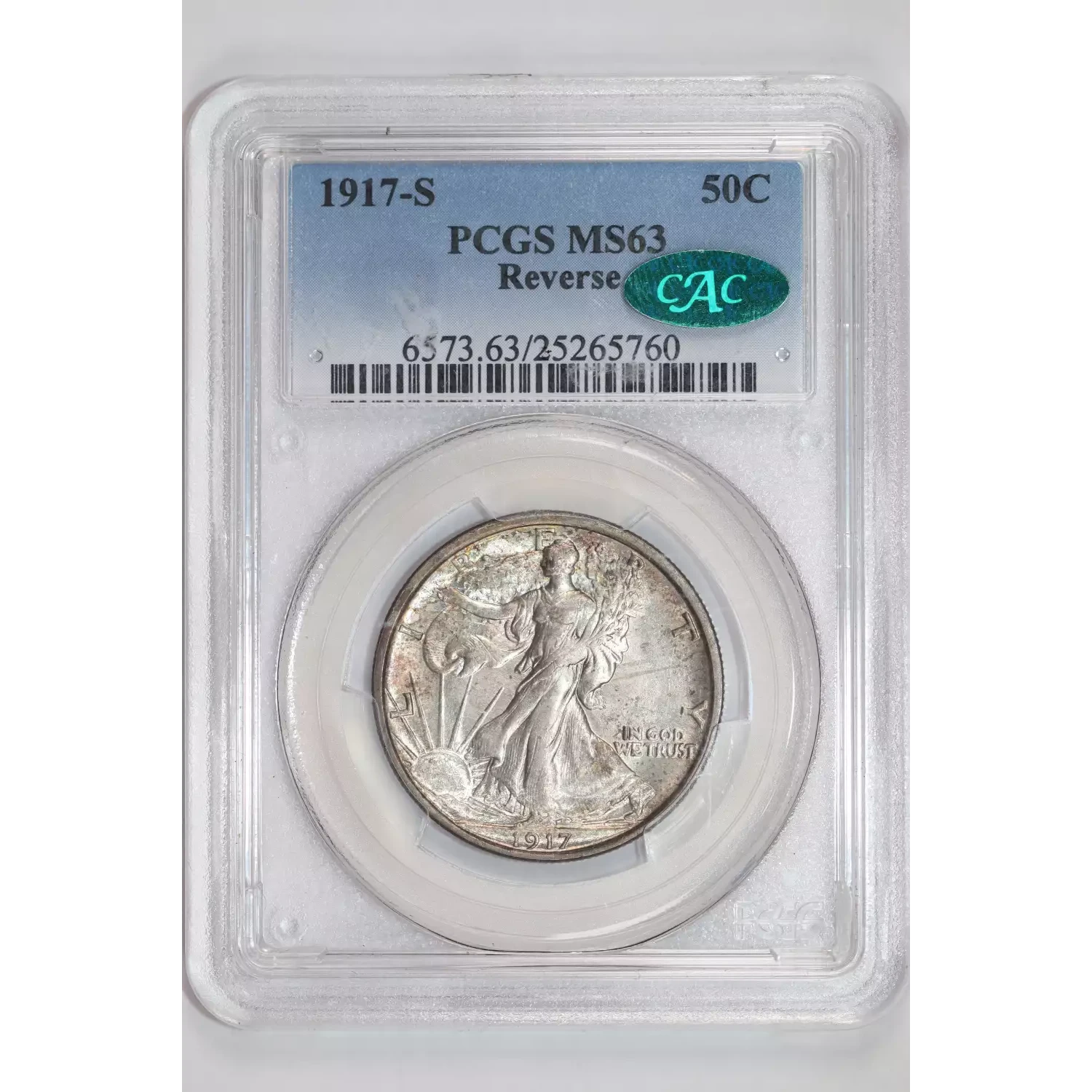 1917-S REVERSE WALKING LIBERTY HALF DOLLAR PCGS MS63 CAC PQ!