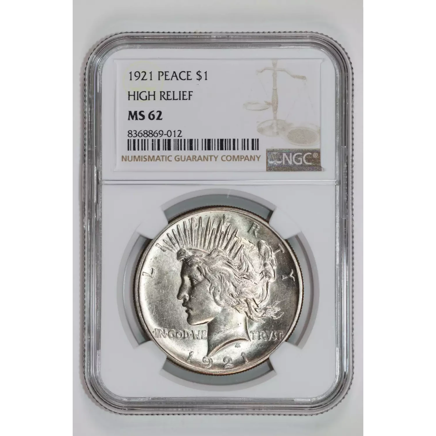 1921 Peace Silver Dollar NGC MS-62 HIGH RELIEF
