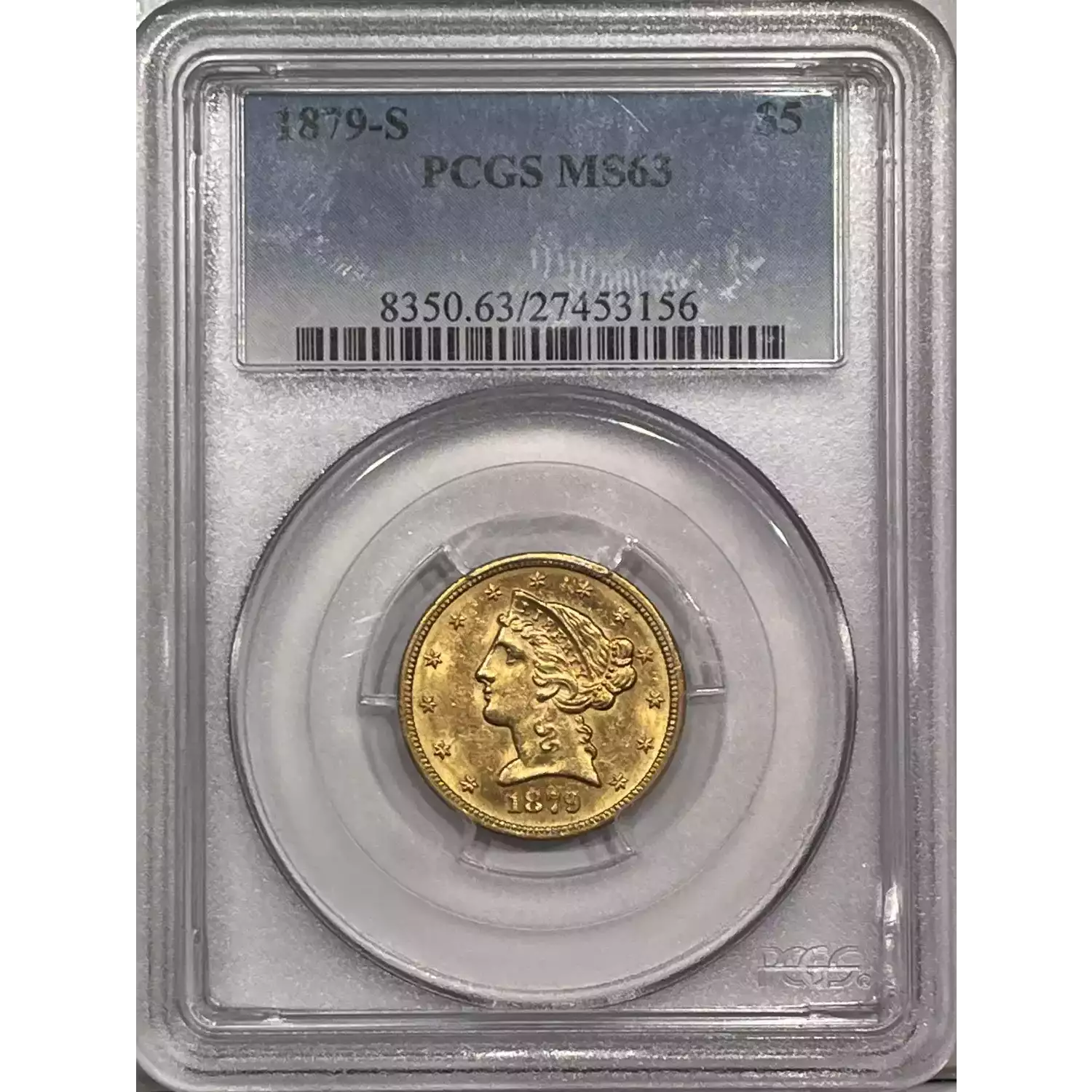 1879-S $5 GOLD LIBERTY HALF EAGLE PCGS MS63