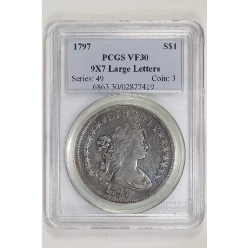 1797 Silver Dollars Draped Bust PCGS VF-30 9x7 Stars, Large Letters
