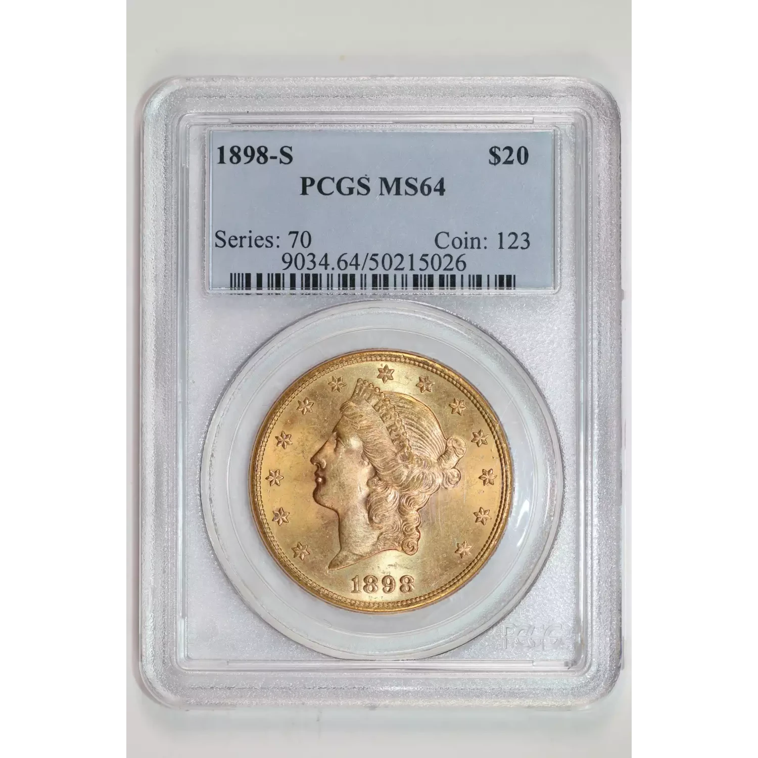 1898-S $20 GOLD LIBERTY HEAD DOUBLE EAGLE PCGS MS64