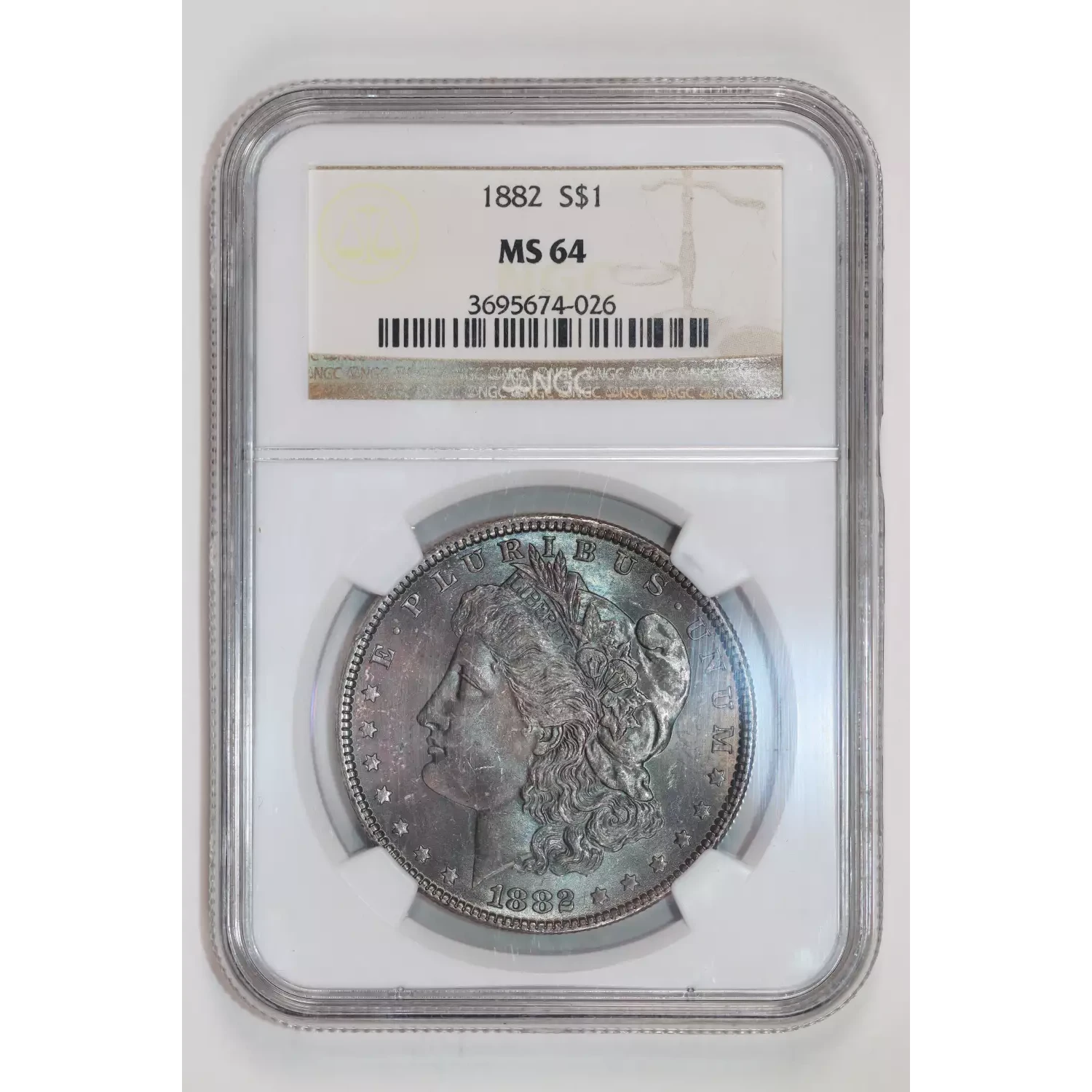1882 MORGAN DOLLAR NGC MS64 - BLUE/PURPLE TONING!