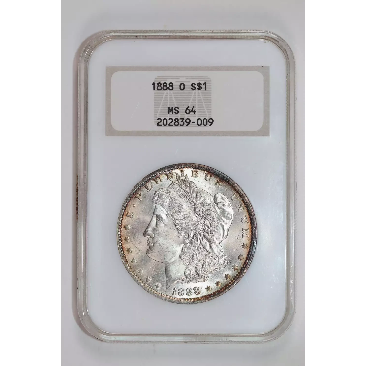 1888-O MORGAN DOLLAR NGC MS64 VERY PQ! OLD FATTY EMBOSSED LOGO