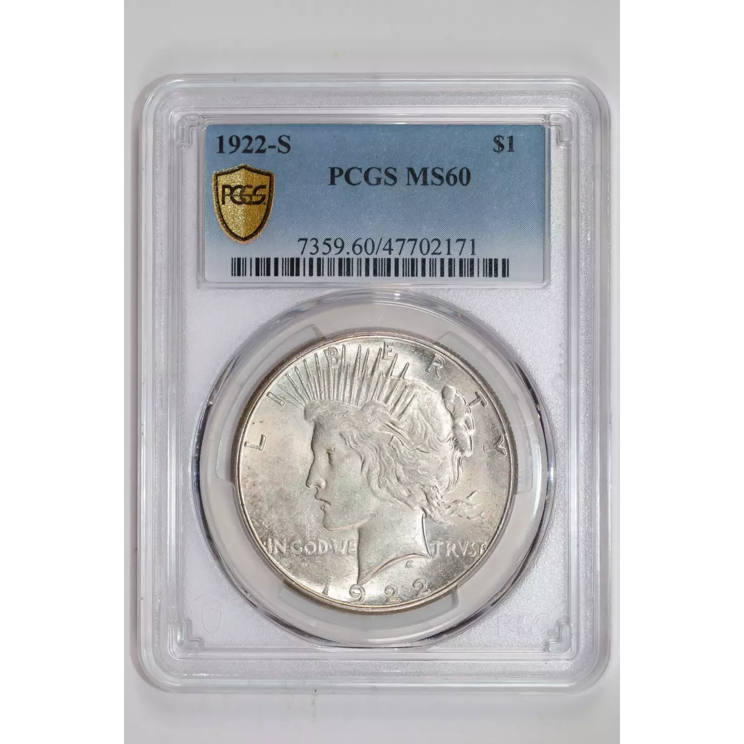 1922-S PEACE DOLLAR PCGS MS60