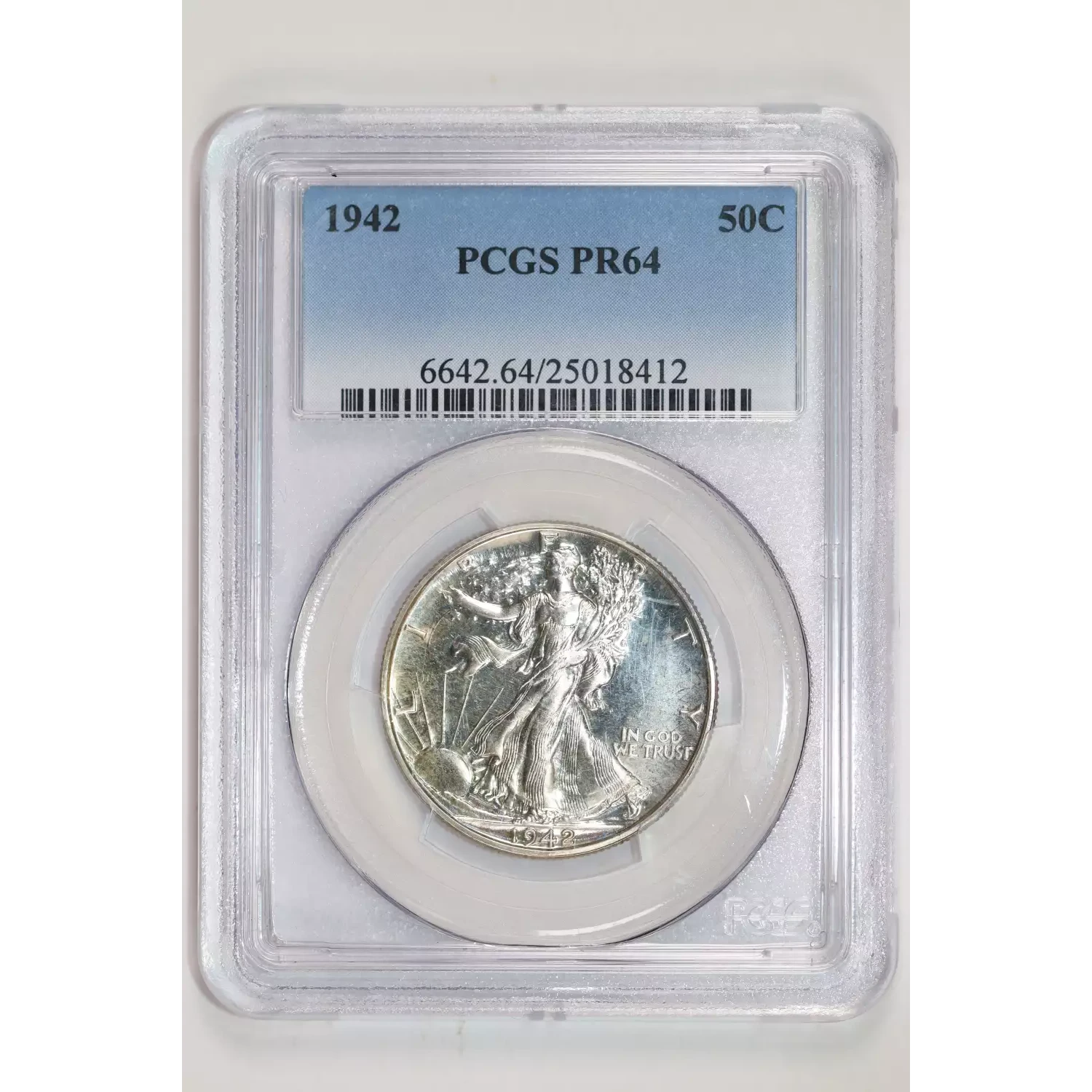 1942 PROOF WALKING LIBERTY HALF DOLLAR PCGS PR64
