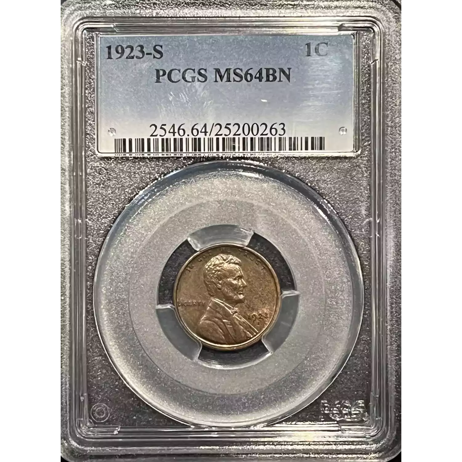 1923-S Small Cents Lincoln, Wheat Ears Reverse PCGS MS-64 BN