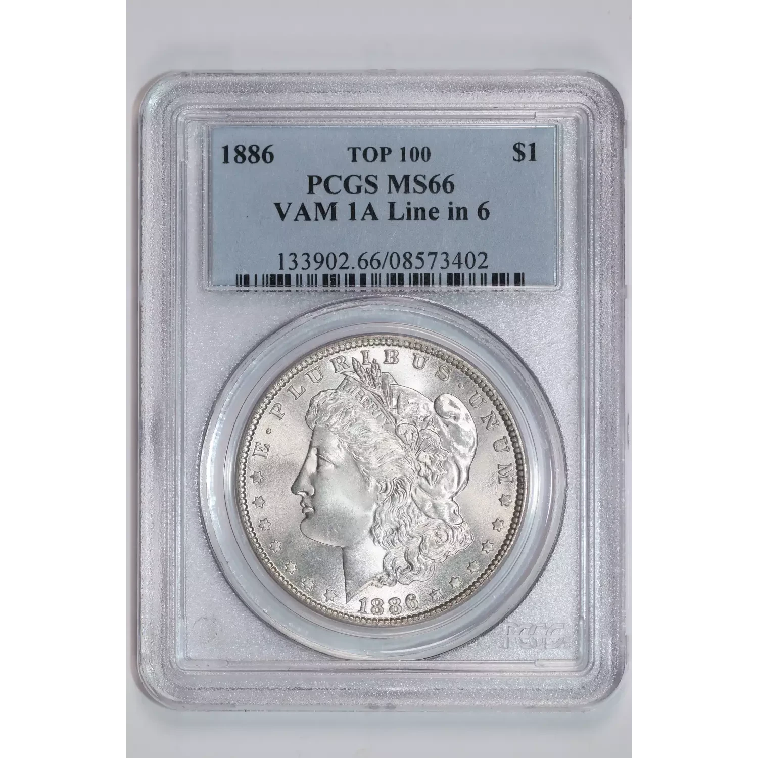 1886 VAM-1A "LINE IN 6" TOP 100 MORGAN DOLLAR PCGS MS66 - VERY PQ!
