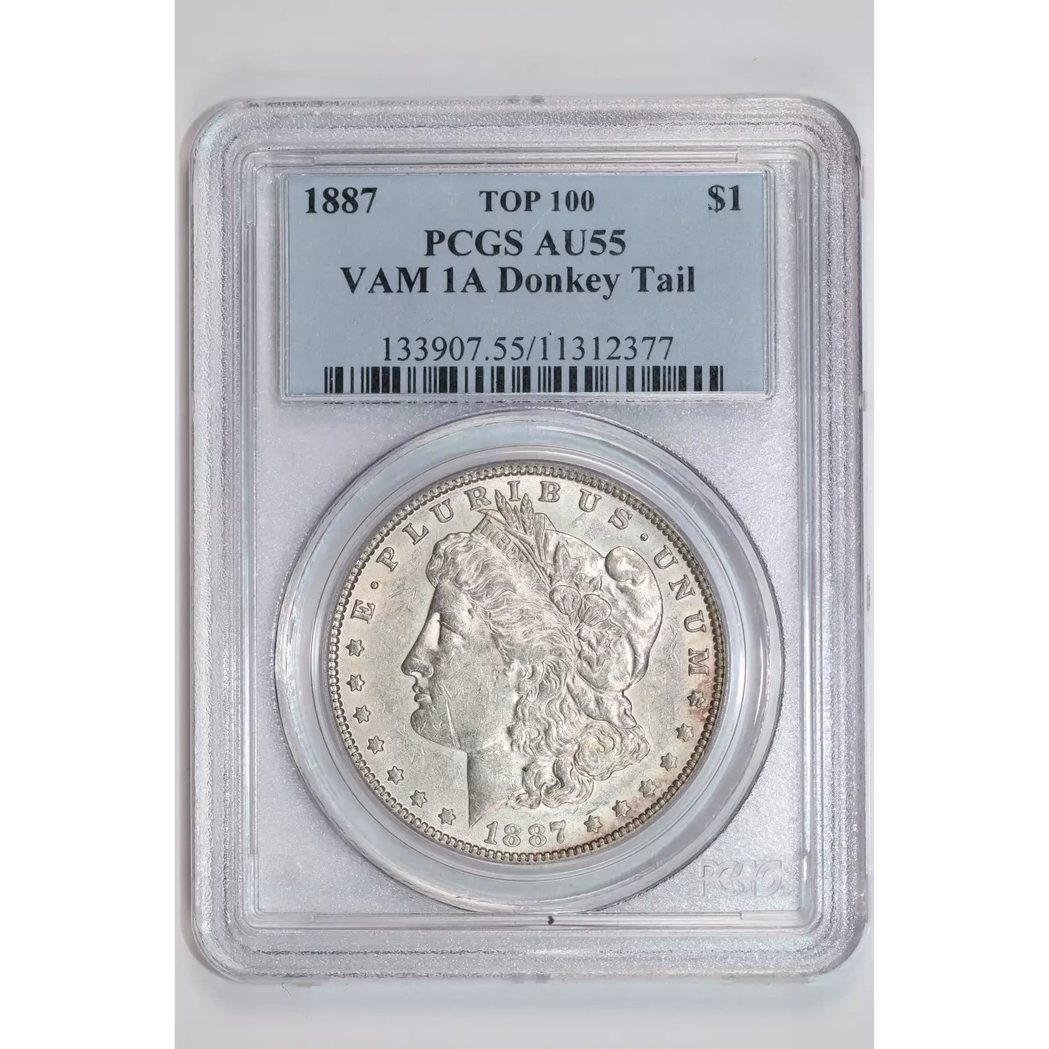 1887 VAM-1A "DONKEY TAIL" TOP 100 MORGAN DOLLAR PCGS AU55