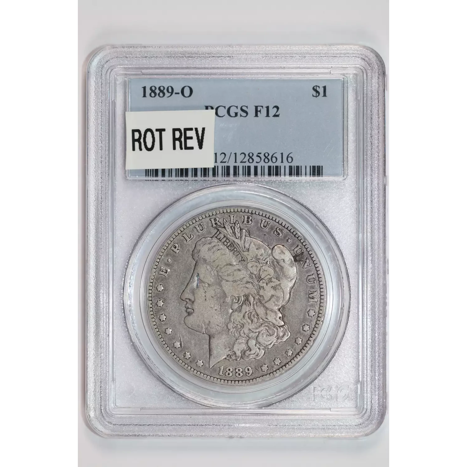 1889-O MORGAN DOLLAR ROTATED DIES 90 DEGREES PCGS F12 - MINT ERROR!