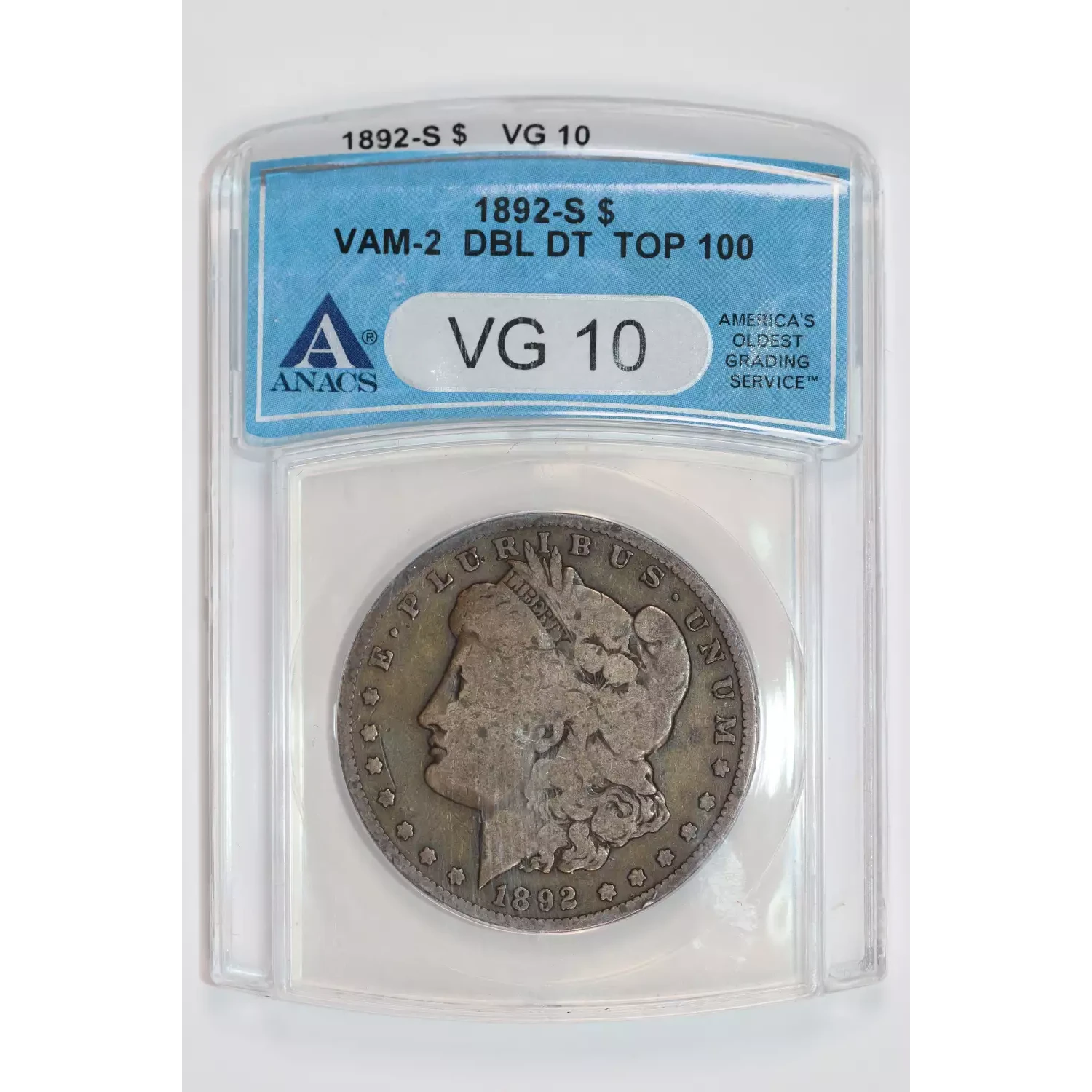 1892-S VAM-2 "DOUBLED DATE" TOP 100 MORGAN DOLLAR ANACS VG10