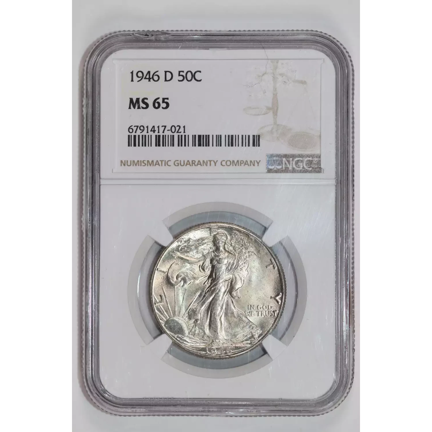 1946-D WALKING LIBERTY HALF DOLLAR NGC MS65