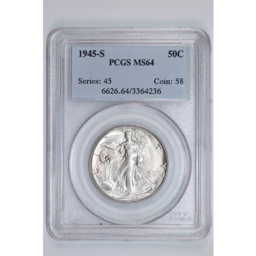 1945-S Half Dollars Liberty Walking PCGS MS-64