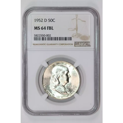 1952-D FRANKLIN HALF DOLLAR NGC MS64 FBL