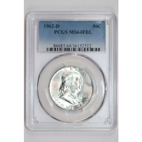 1962-D FRANKLIN HALF DOLLAR PCGS MS64 FBL