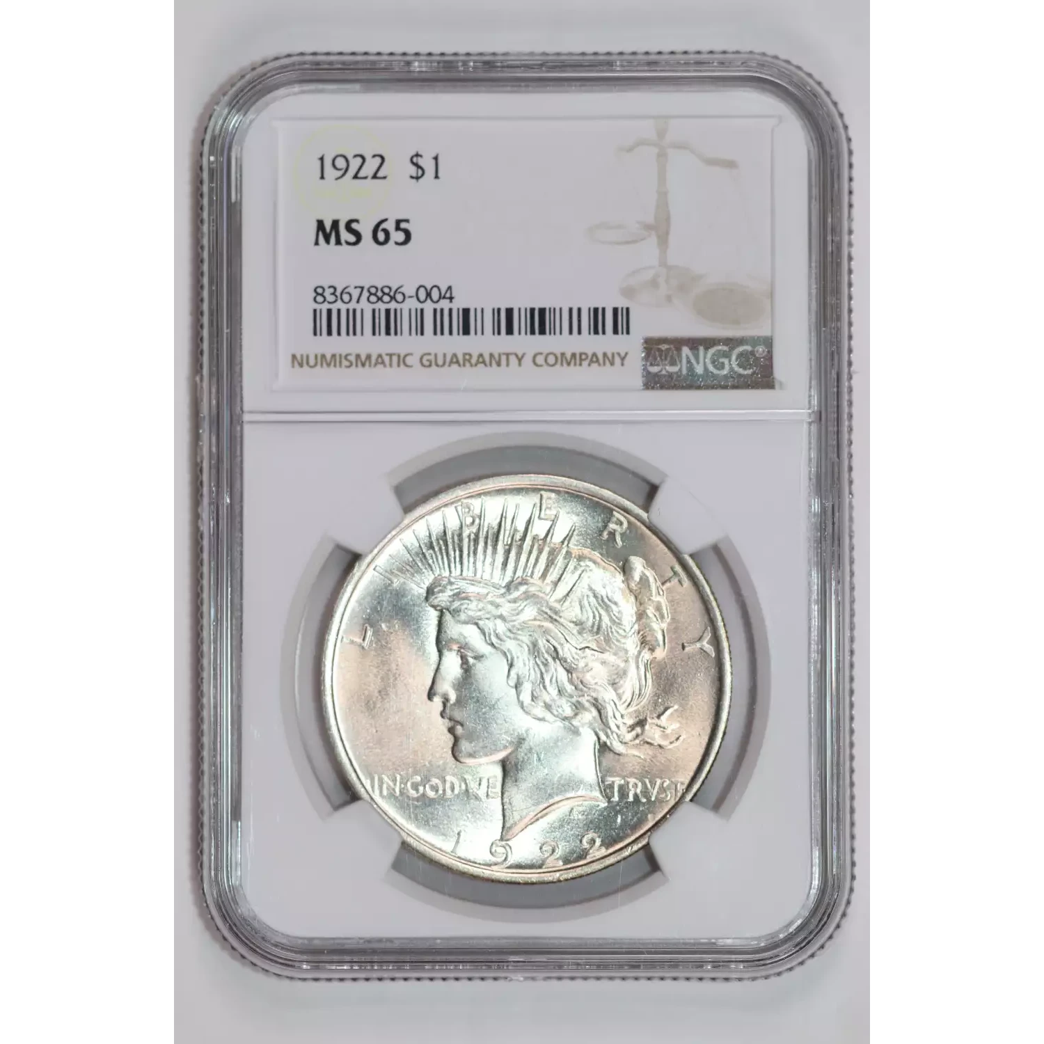 1922 PEACE DOLLAR NGC MS65 VERY PQ!