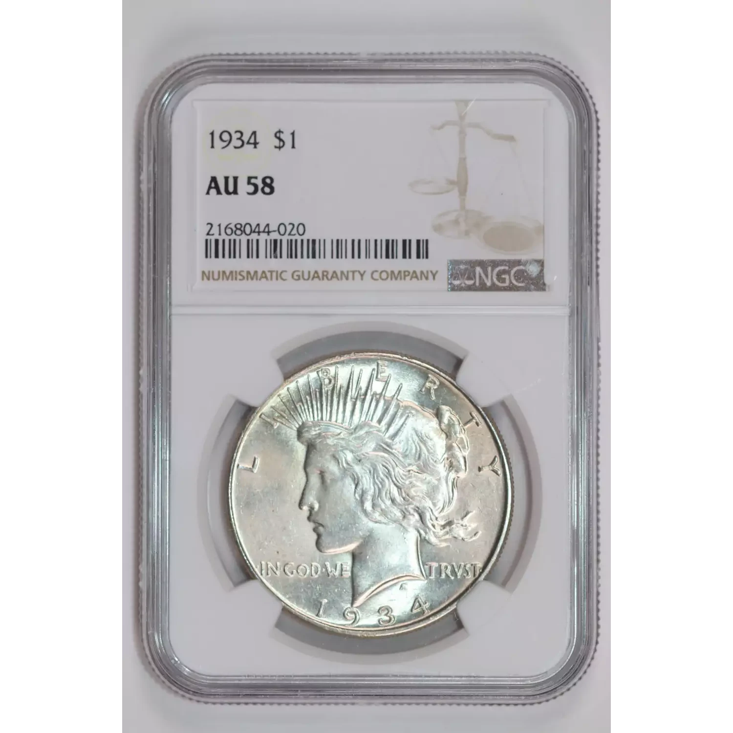 1934 PEACE DOLLAR NGC AU58