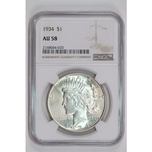 1934 Peace Silver Dollar NGC AU-58