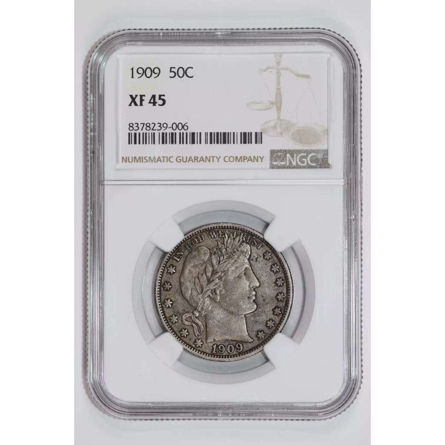 1909 BARBER HALF DOLLAR NGC XF45 ORIGINAL!