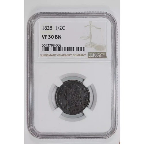 1828 CLASSIC HEAD HALF CENT NGC VF30 BN