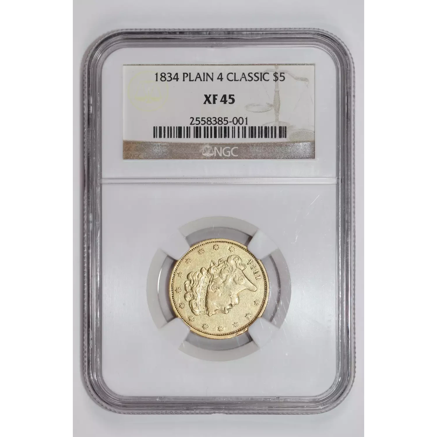 1834 PLAIN 4 CLASSIC $5 GOLD HALF EAGLE NGC XF45
