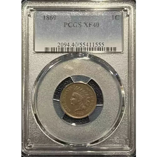 1869 Small Cents Indian Head PCGS XF-40 BN