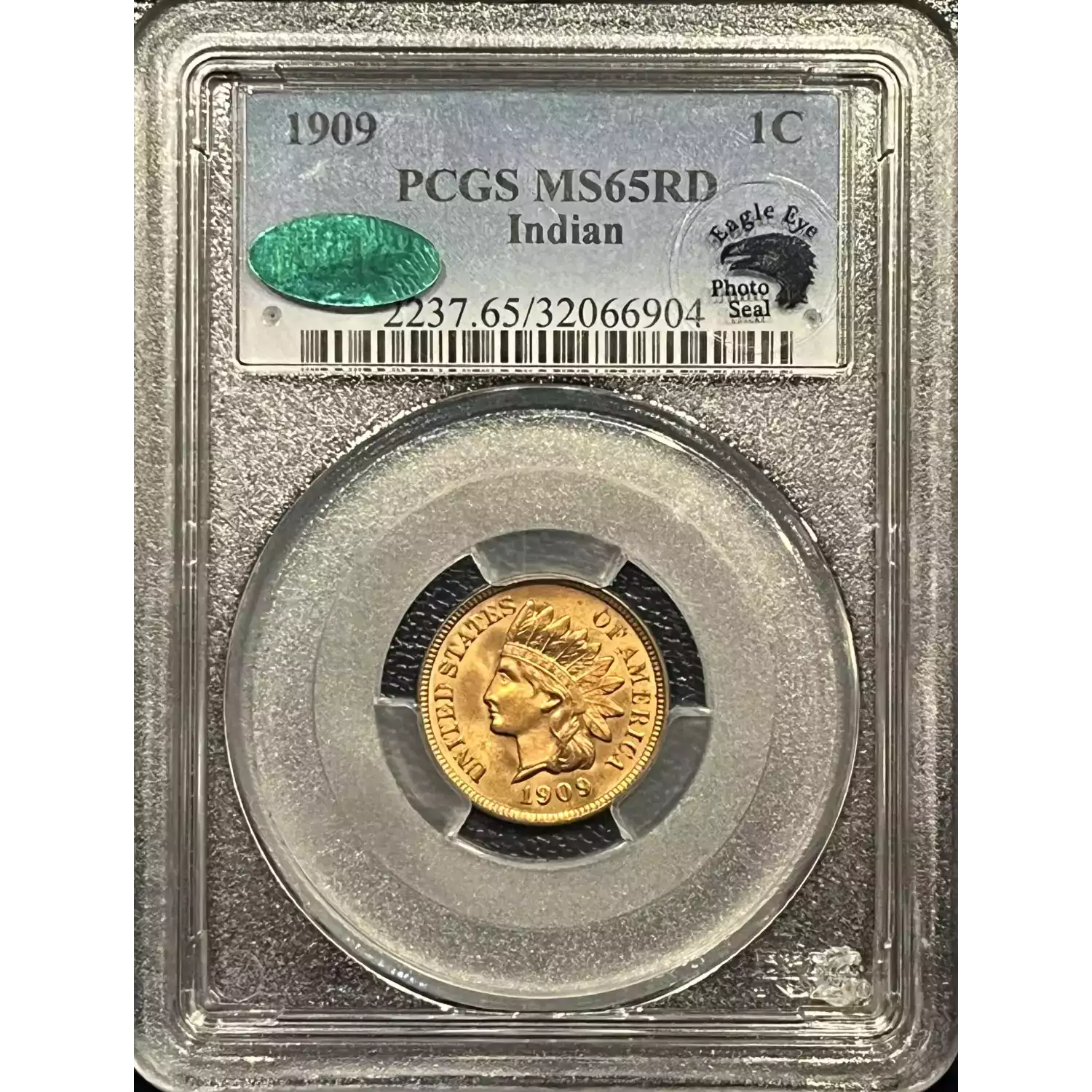 1909 INDIAN CENT PCGS MS65RD CAC