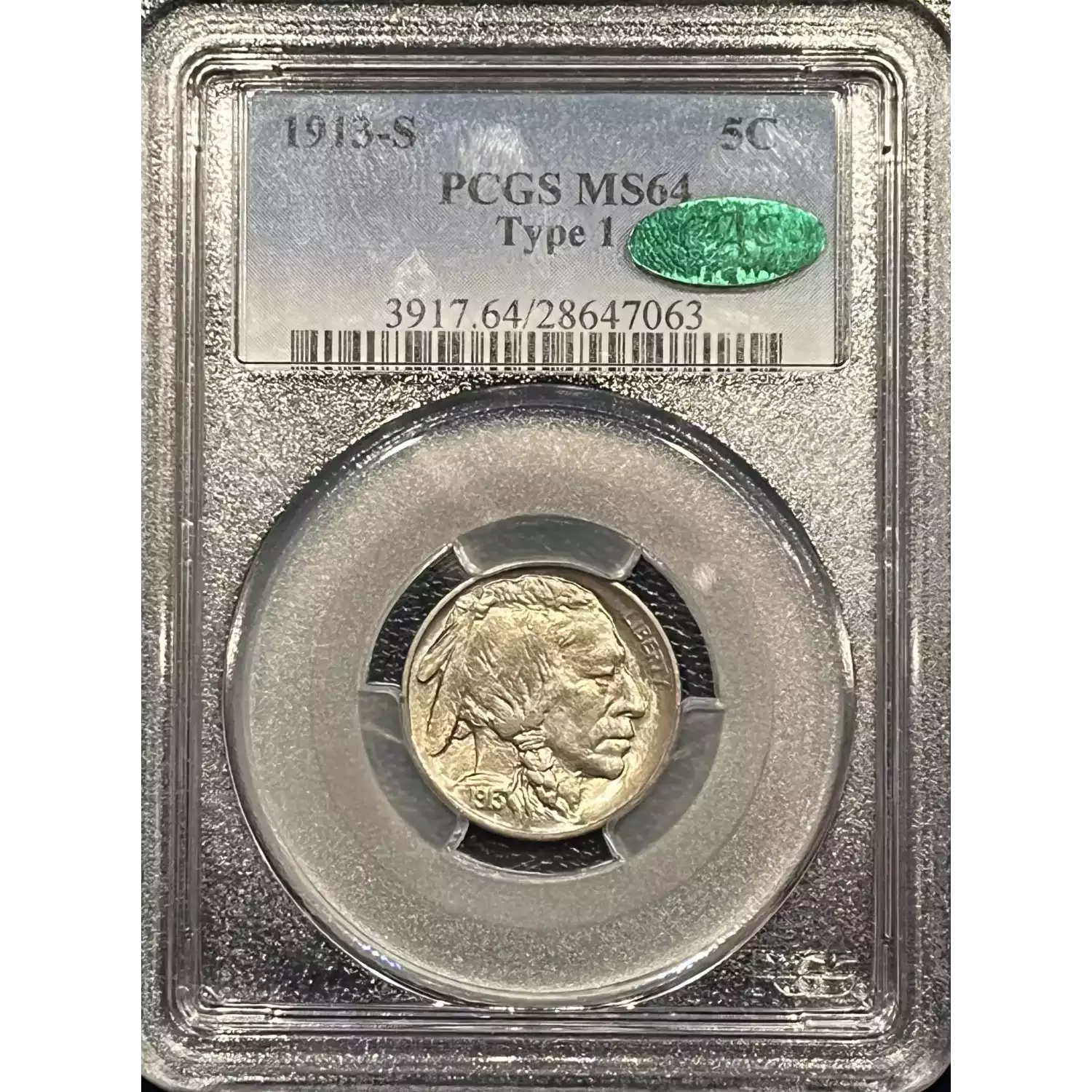 1913-S Nickel Indian Head or Buffalo PCGS MS-64 Type 1 CAC