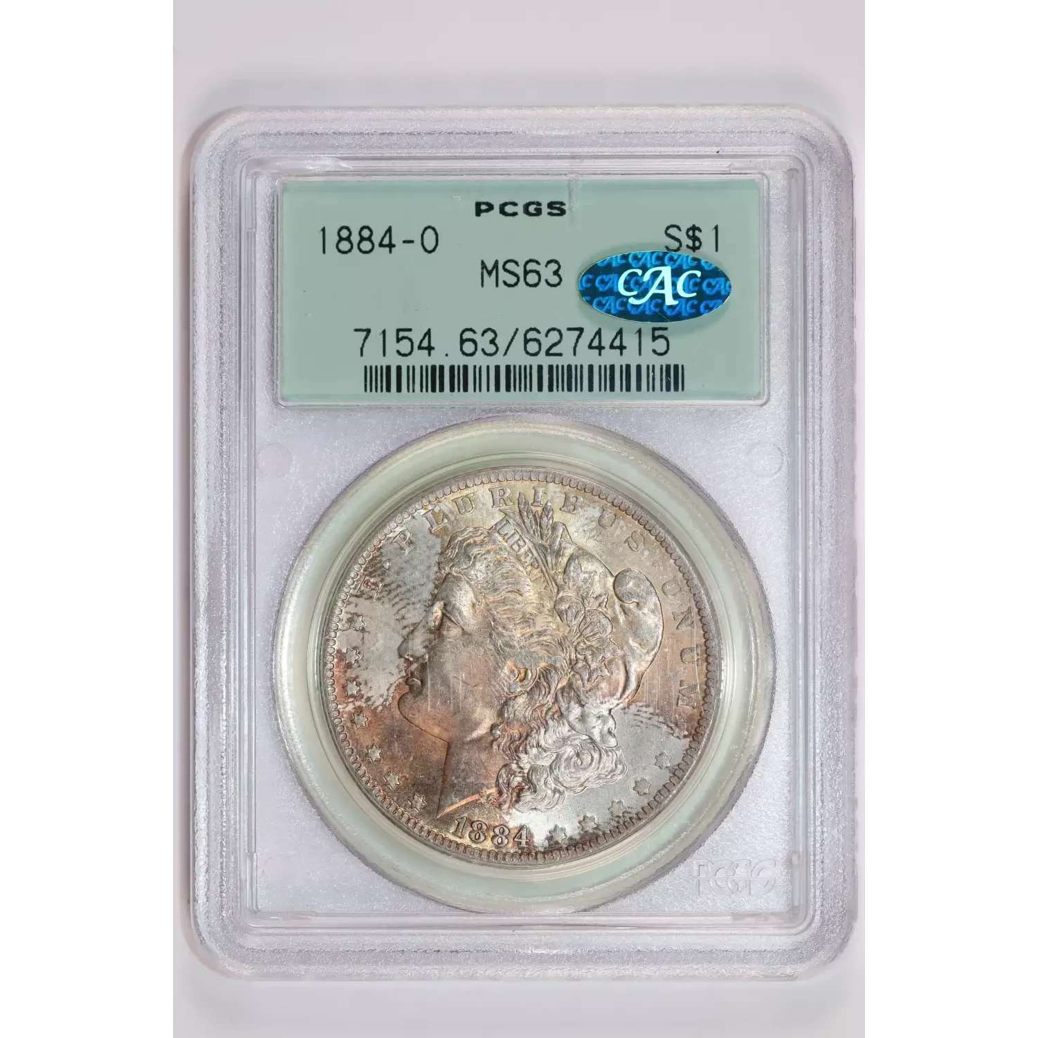 1884-O MORGAN DOLLAR PCGS MS63 CAC OGH - COOL TONING!
