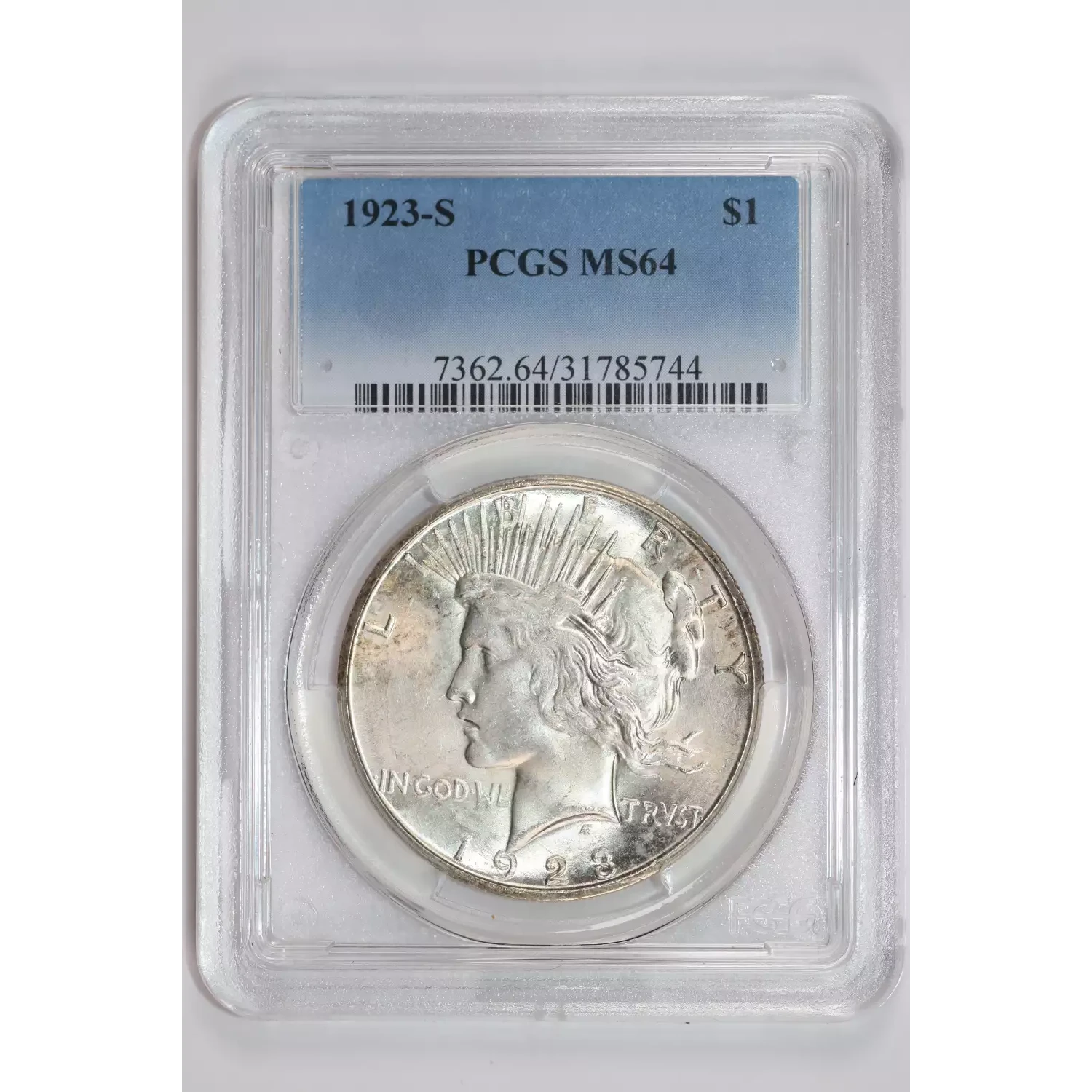 1923-S PEACE DOLLAR PCGS MS64 VERY PQ!