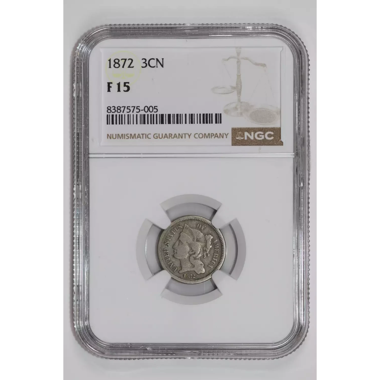 1872 Three Cent Pieces (Nickel) NGC F-15