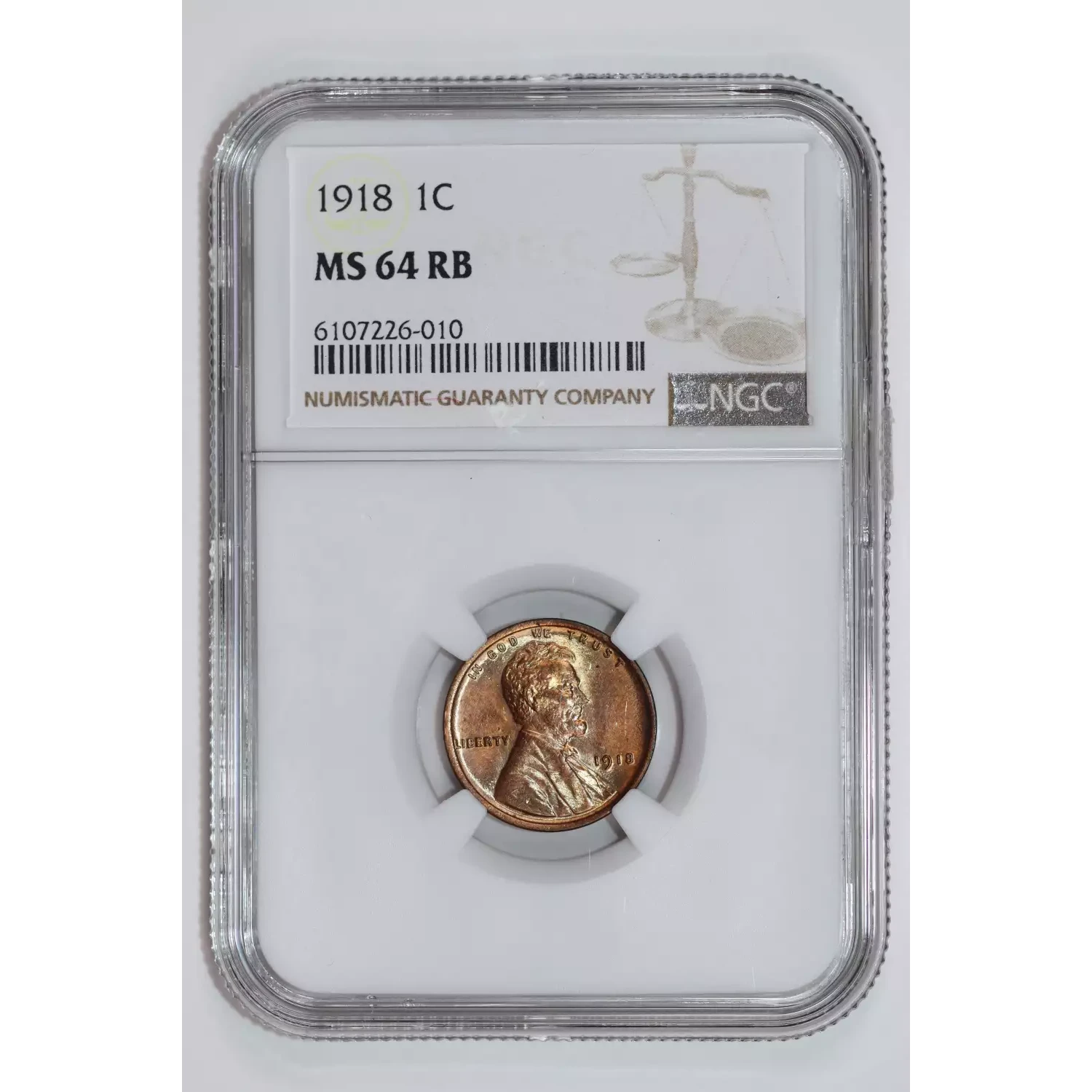 1918 LINCOLN WHEAT CENT NGC MS64 RB