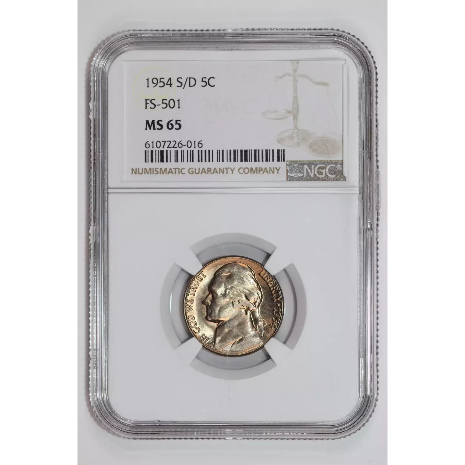 1954-S/D FS-501 JEFFERSON NICKEL NGC MS65