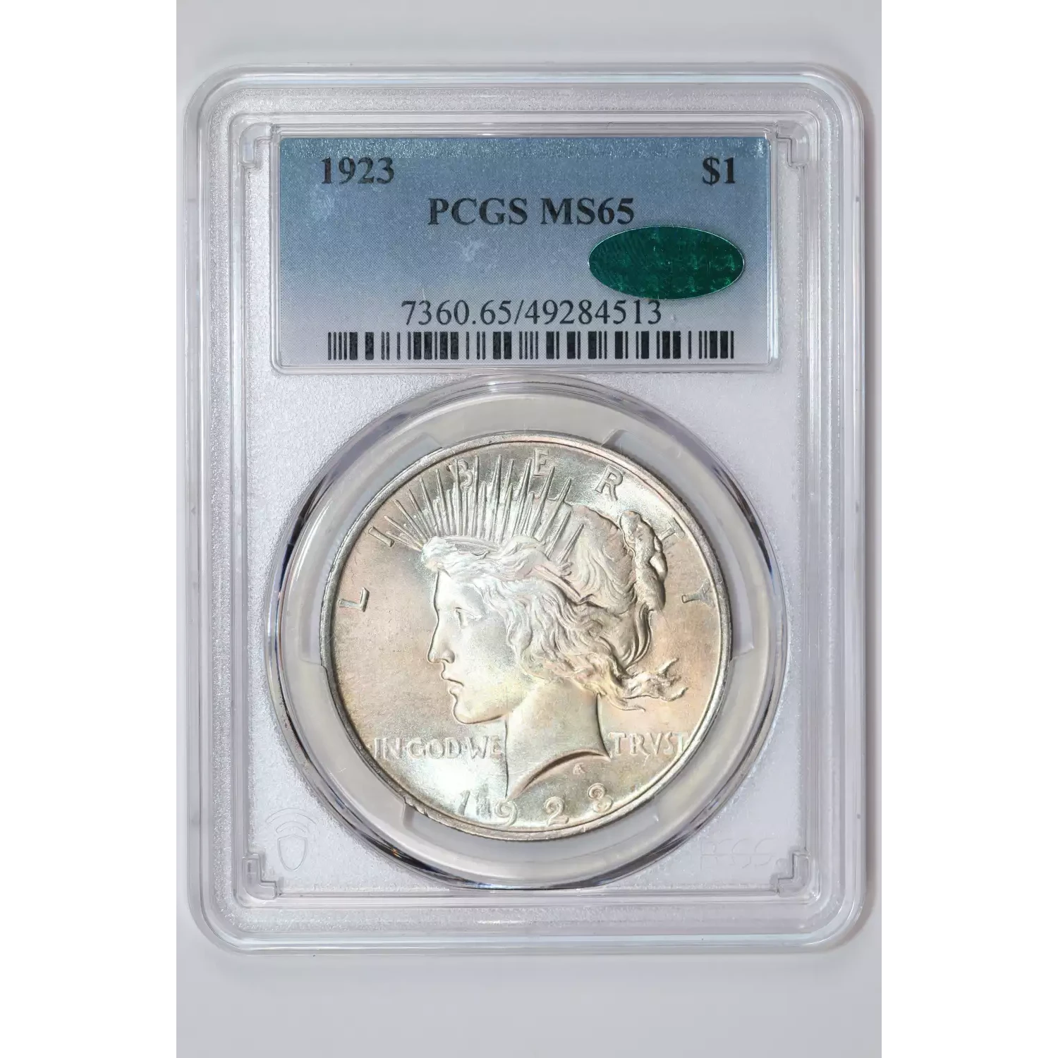 1923 PEACE DOLLAR PCGS MS65 CAC - VERY PQ!