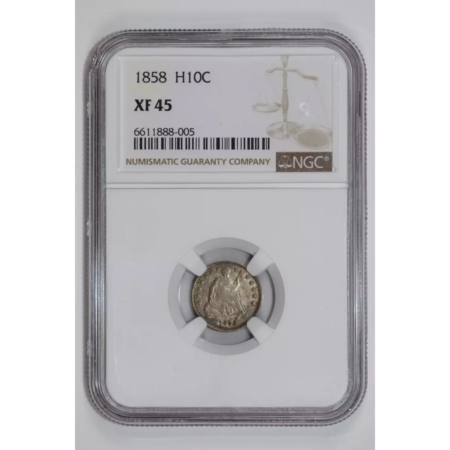 1858 SEATED LIBERTY HALF DIME NGC XF45